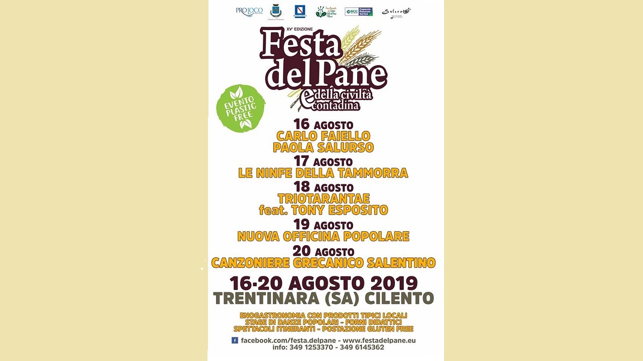 Giunge alla 15° edizione la “Festa del Pane e della civiltà contadina” che si svolgerà, dal 16 al 20 agosto, a Trentinara (SA).
